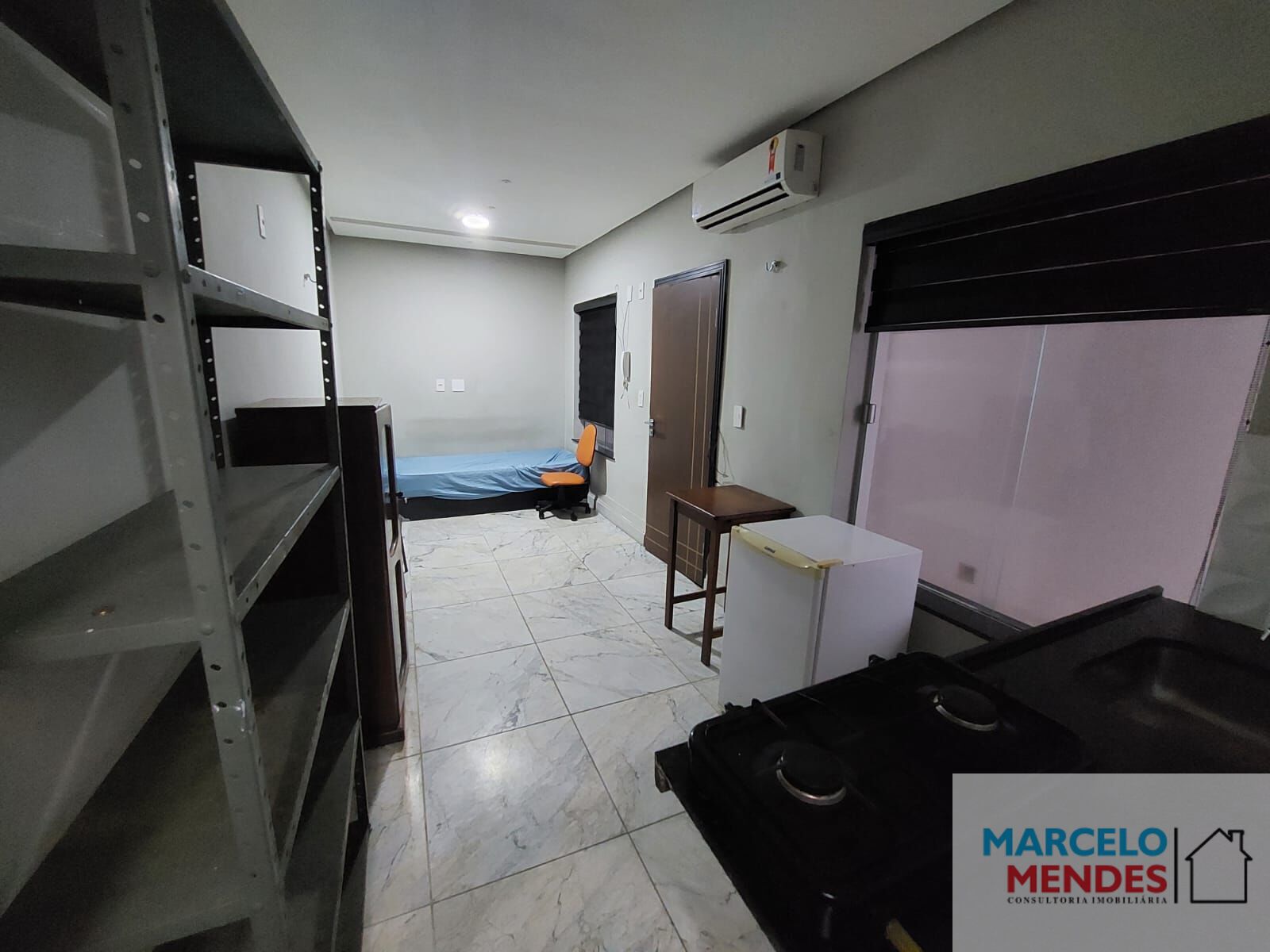 Quarto conjugado com cozinha e banheiro